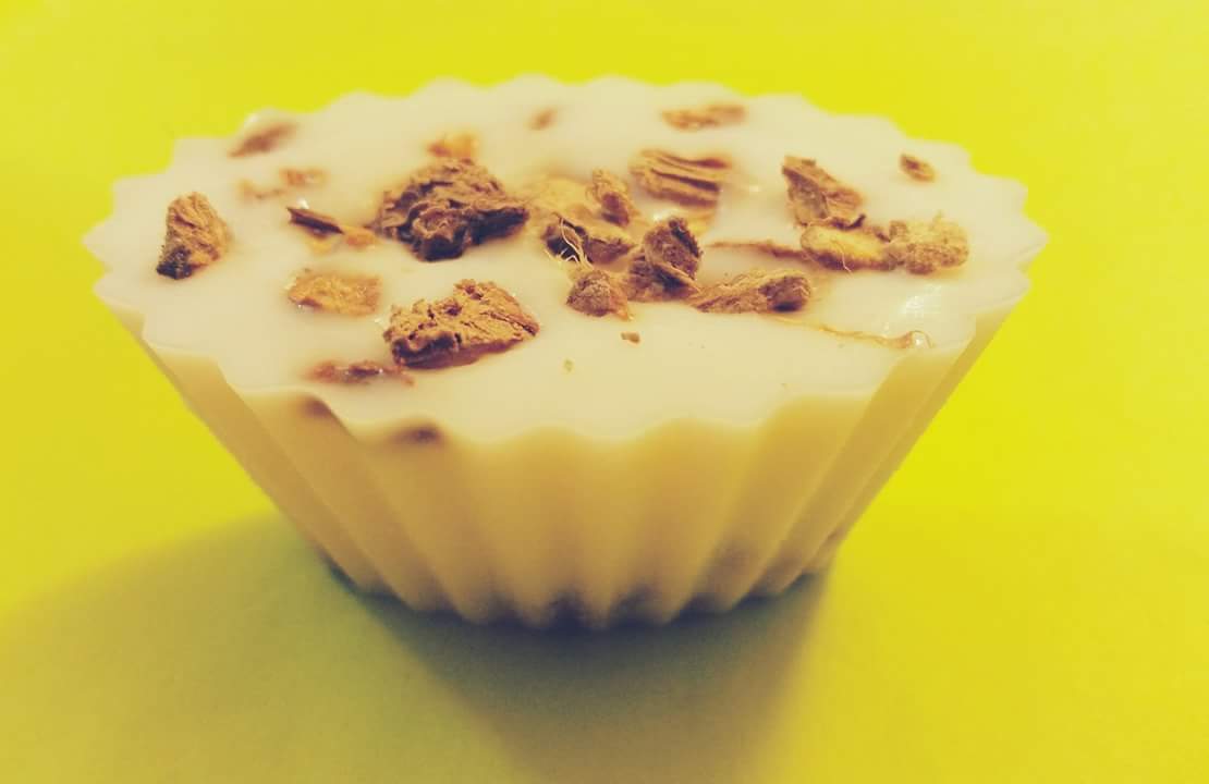 La tartina è realizzata con cera di soia ed olii essenziali. Non contiene alcun tipo di elemento chimico all’interno.