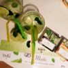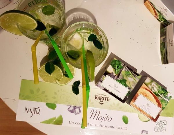 Fanno parte della linea Mojito: bagnodoccia, crema corpo, crema mani, acqua tonica per il corpo, scrub doccia, sapone profumato, pane scrub, bastoncini per l’ambiente.