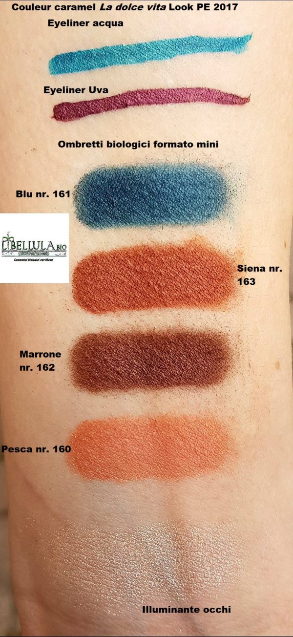 – 4 ombretti in formato mini: marrone, blu, siena, pesca