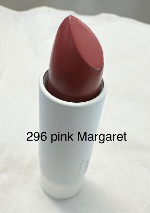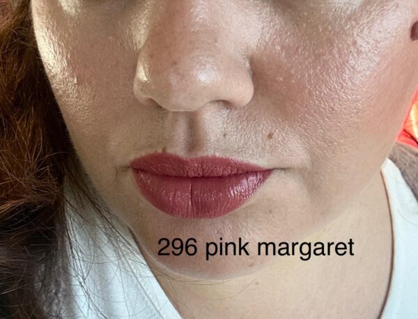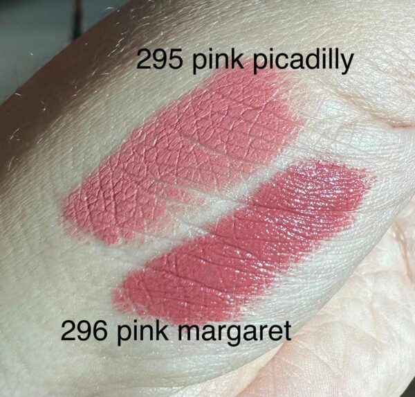 Tonalità nr. 296 – Pink Margaret è un rosa medio scuro, con lievi sfumature marroncine, che richiama la freschezza dei giardini fioriti di Notting Hill. Questa nuance, vivace e femminile, è perfetta per chi desidera un tocco di colore pieno, ma luminoso sulle labbra.