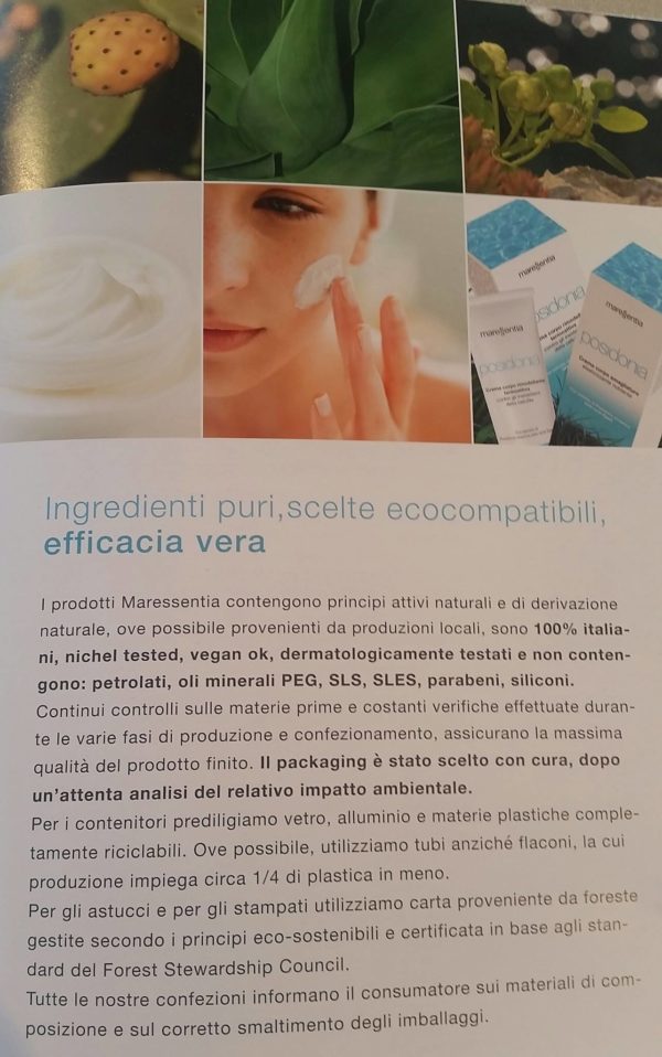 I cosmetici naturali Maressentia sono realizzati con formule esclusive, il ciclo produttivo è completamente svolto in Italia, in un laboratorio dotato di un Sistema di Gestione per la Qualità con certificazione ISO 9001.