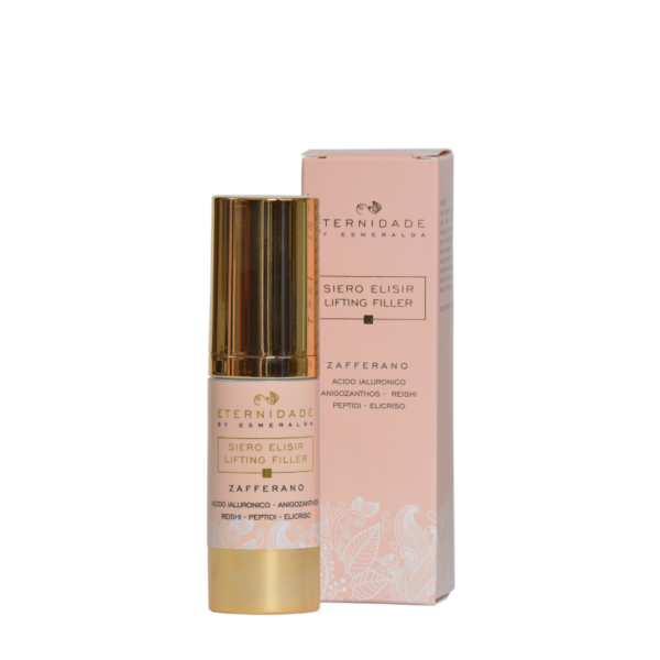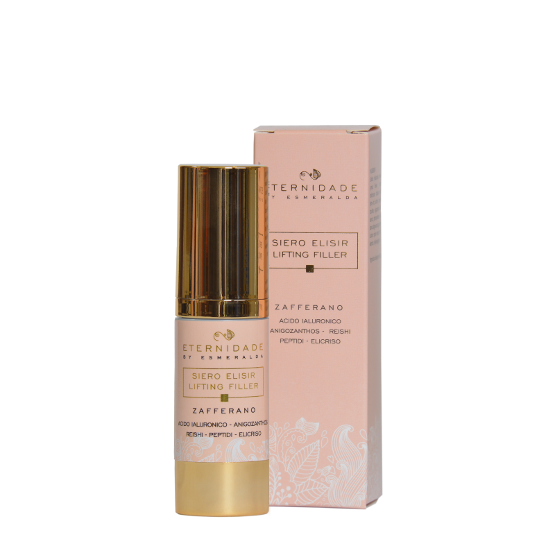 Lussuoso siero per il viso, formulato con ingredienti preziosi e funzionali: ZAFFERANO, ANIGOZANTHOS, KIGELIA, ACIDO IALURONICO, PEPTIDI, CAFFEINA, CENTELLA ASIATICA, MANGO. Innovativo Siero “Elisir” Lifting Filler, WATER FREE, da applicare tramite vaporizzazione, permette un più facile assorbimento del prodotto. Grazie all’unione di questi estratti concentrati in alte percentuali, esplica un azione lifting e filler che contrastano le rughe e gli inestetismi.