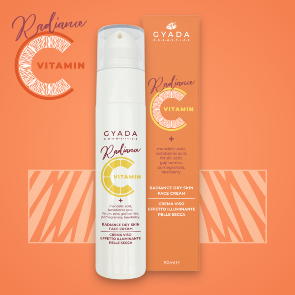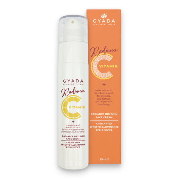 Radiance Dry Skin Face Cream is a velvety face cream, ideal for mixed, dull, tendentially dry and chapped skin. Thanks to its mix of active ingredients based on stabilized Vitamin C, Mandelic Acid, Lactobionic Acid and Ferulic Acid, it gently exfoliates the skin, treats excess sebum, discolouration and evens the complexion. It also contains an innovative polysaccharide hydration complex obtained from Caesalpinia Spinosa**, which improves skin hydration and helps to treat desquamations; a combination of Algae that contribute to maintaining the balance of the skin microbiota and plant extracts of Goji Berry, Pomegranate and Bearberry with antioxidant properties, Low MW Hyaluronic Acid, Avocado Oil, Argan Oil and Shea Butter with restorative and regenerating properties.