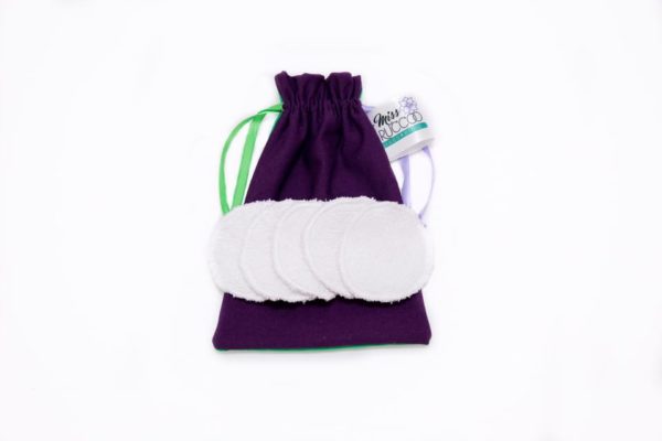 Pad mini da 6 cm tondo, realizzato in spugna di bamboo. Cucito e ricamato a mano da artigiana italiana. Adatto per concludere la rimozione finale dei residui dl trucco in zone difficili come quella infracigliare.