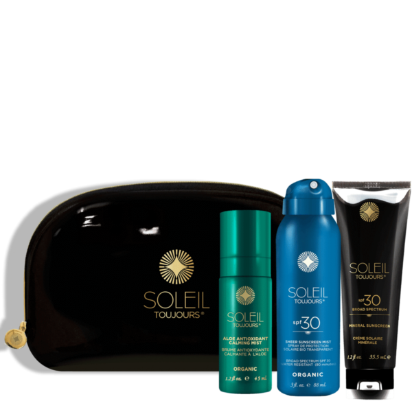 Sempre pronti a seguire il richiamo del sole. Con questo pratico trio composto dai 3 prodotti best seller soleil toujours. Mist solari ad ampio spettro a base minerale e organici, ricchi di antiossidanti. Contenuti in un’ elegante pochette.