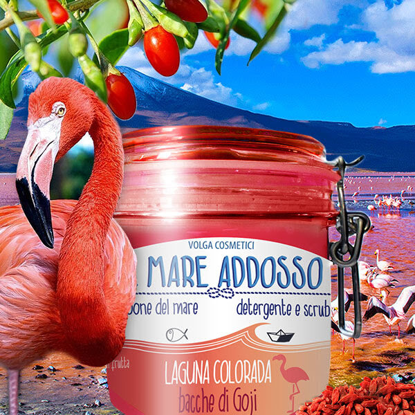 LAGUNA COLORADA – Un lago fiabesco abitato da fenicotteri color vermiglio, un lago da Alice nel paese delle Meraviglie. Il profumo è quello intenso degli idrolati di bacche di Goji.